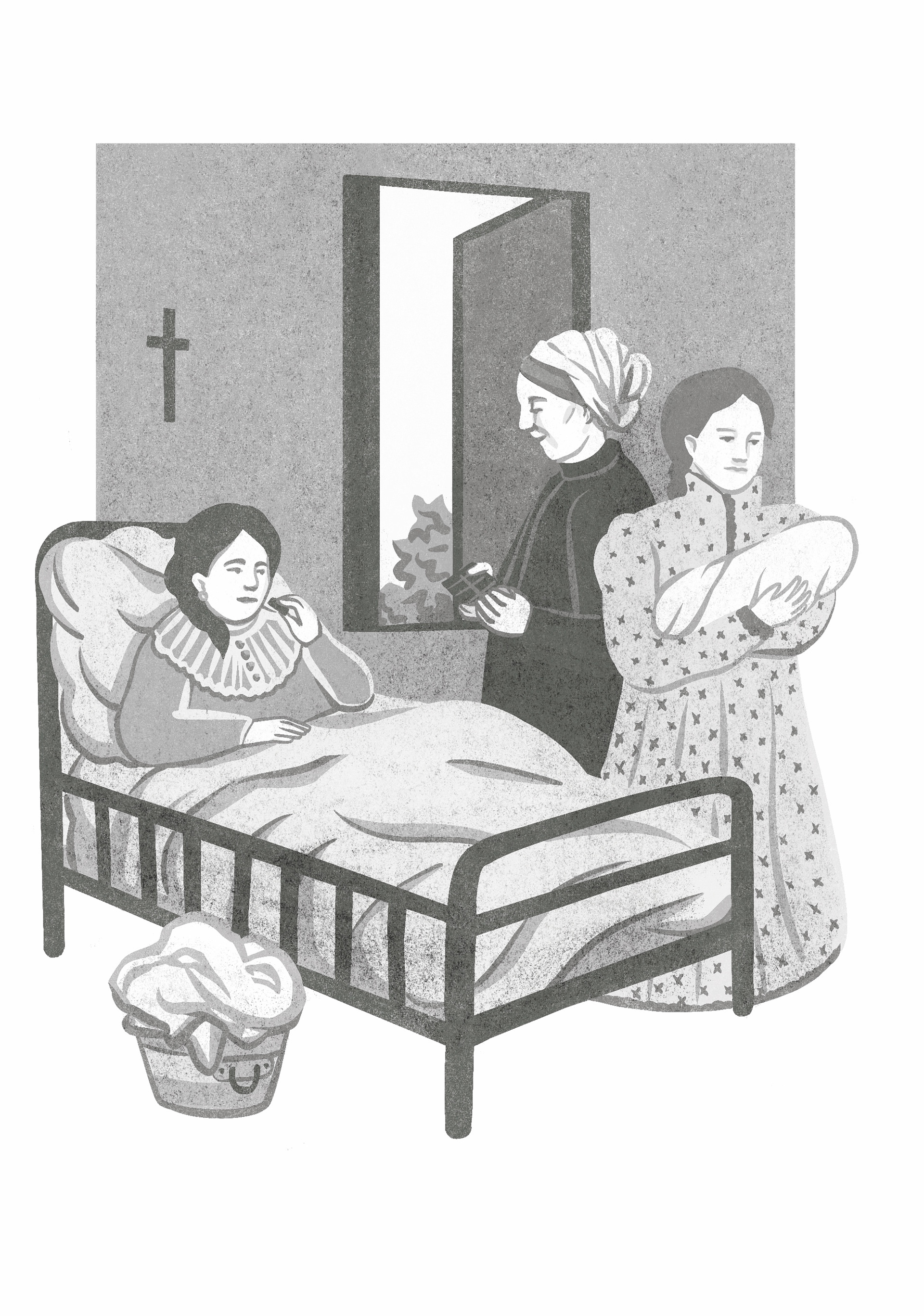 Árbol genealógico ilustrado de tres familias ligadas a la partería. Basado en el original de Enriqueta (dcha)