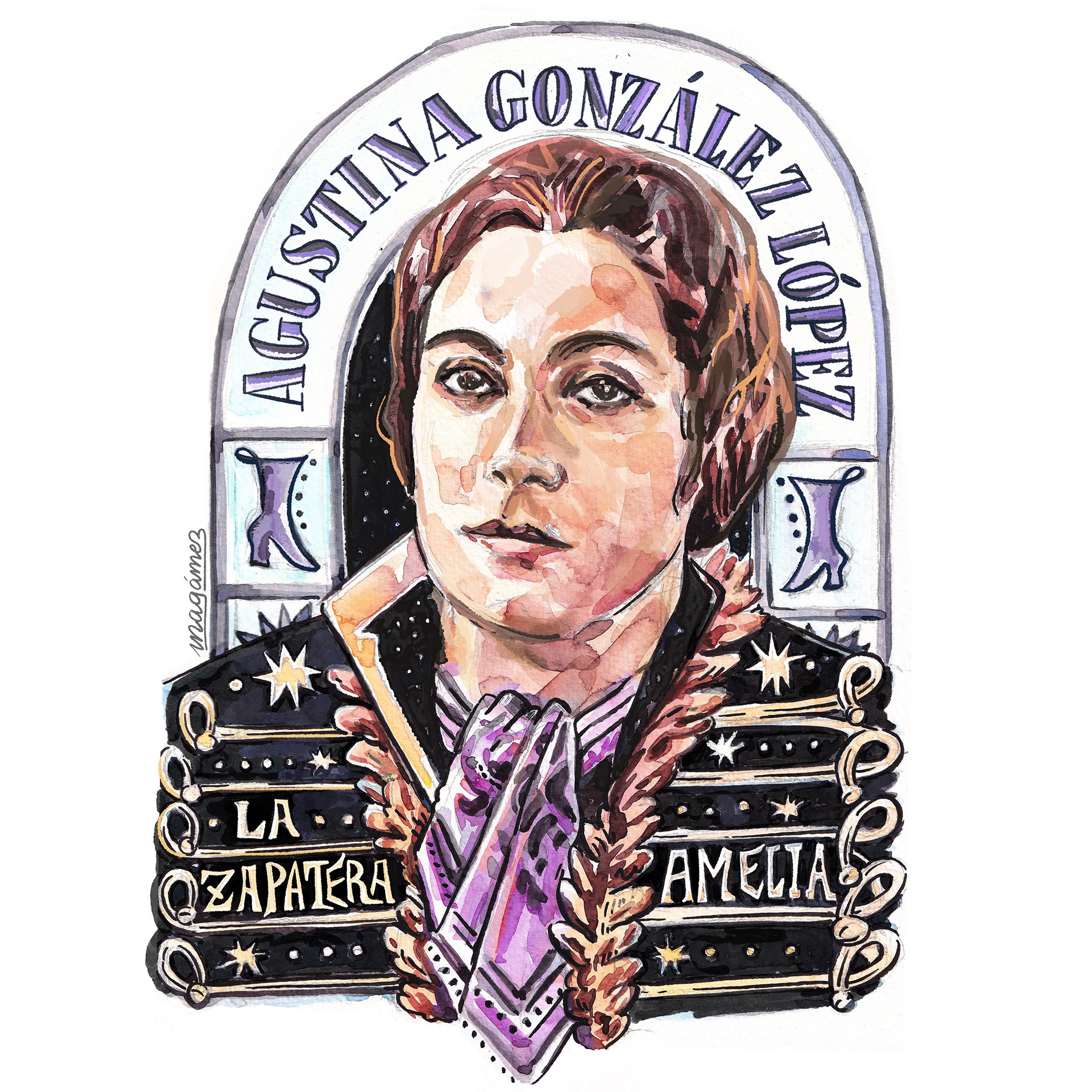 Antes que los rockeros, ella ya llevaba su hussar y sus pantalones en la Granada de principios de s.XX. Auto-publicaba sus opúsculos, fanzines donde expresaba ideas y arte. Era pintora, política, espiritista, luchadora greco-romana, dramaturga, zapatera y una de las primeras en autodenominarse feminista. También fue la primera mujer en presentarse a unas elecciones por cuenta propia y fundadora de una de las primeras escuelas de arte para mujeres en la ciudad, así como su propio partido político. No sé cómo no hay una placa de ella ya en la calle Mesones.